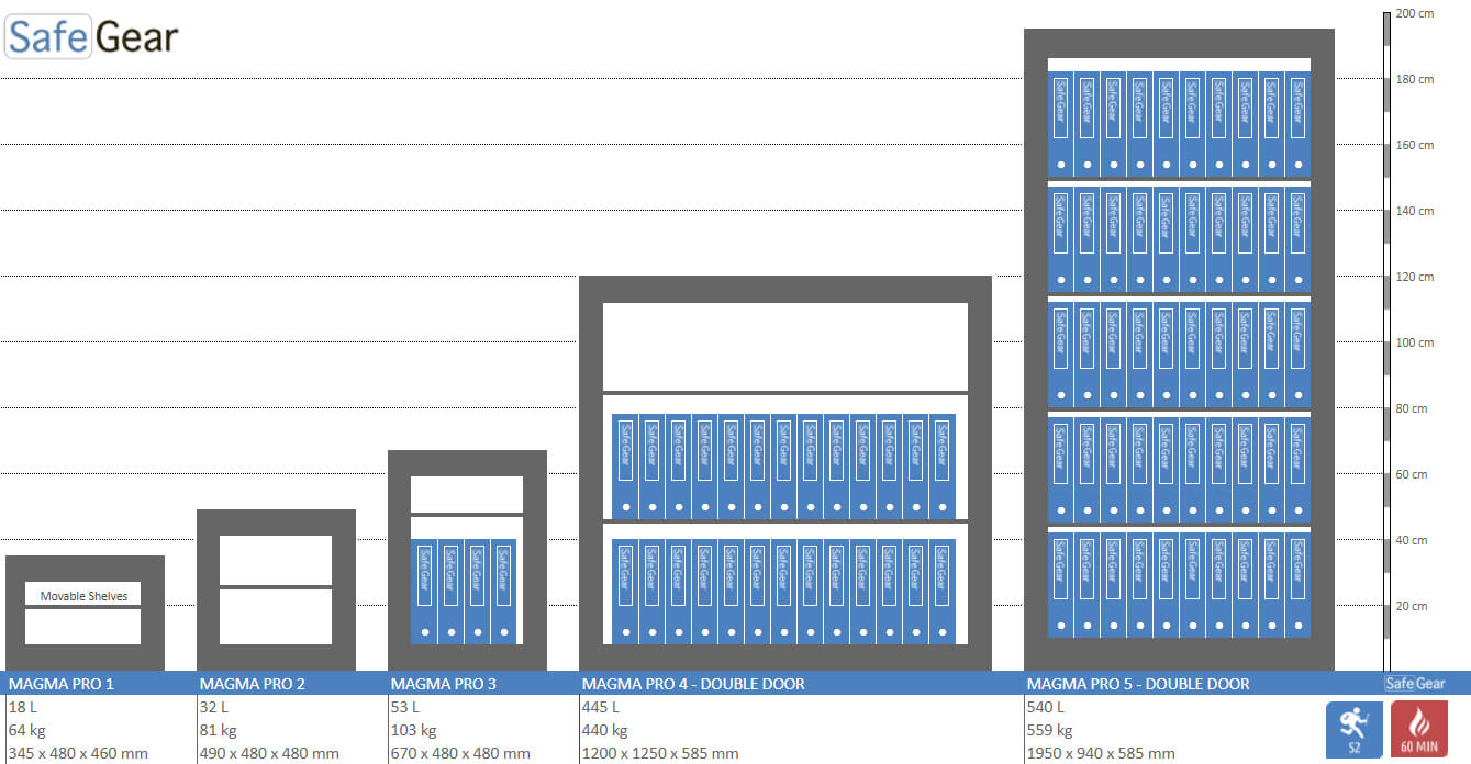 Magma Pro ir droša vērtslietu seifu sērija ar pretuzlaušanas aizsardzību S2 klasē un ugunsizturību līdz pat 60 minūtēm