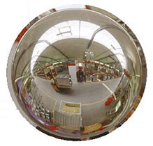 Kupolveida sfēriskie spoguļi piedāvā 360° leņķa pārskatu un tiek izmantoti, lai iegūtu plašāku perspektīvu.